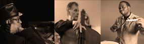 working acoustic jazz trio of piano, bass and drums