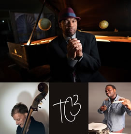 working acoustic jazz trio of piano, bass and drums